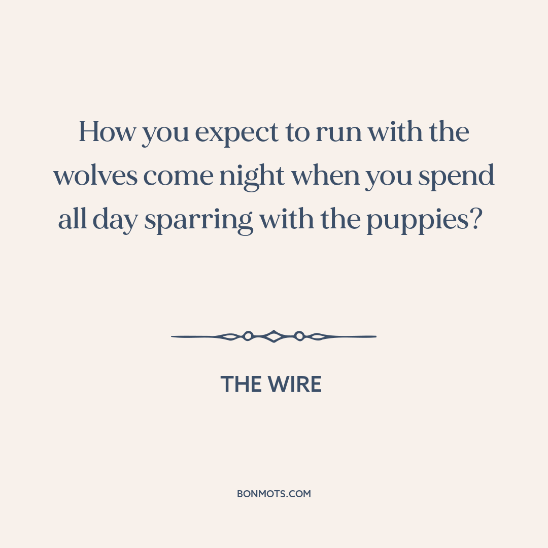 How you expect to run with the wolves come night when you spend all day sparring with the puppies?