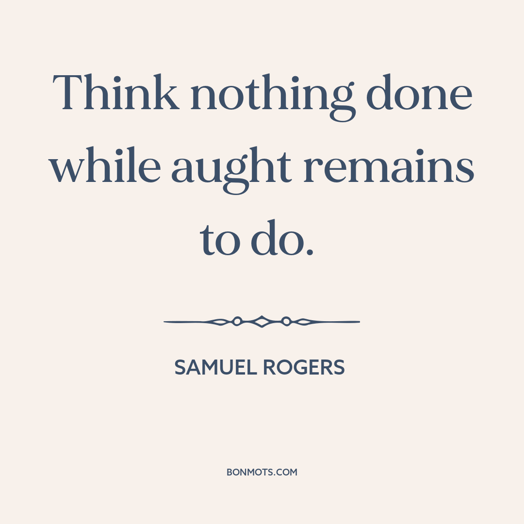 Think nothing done while aught remains to do.