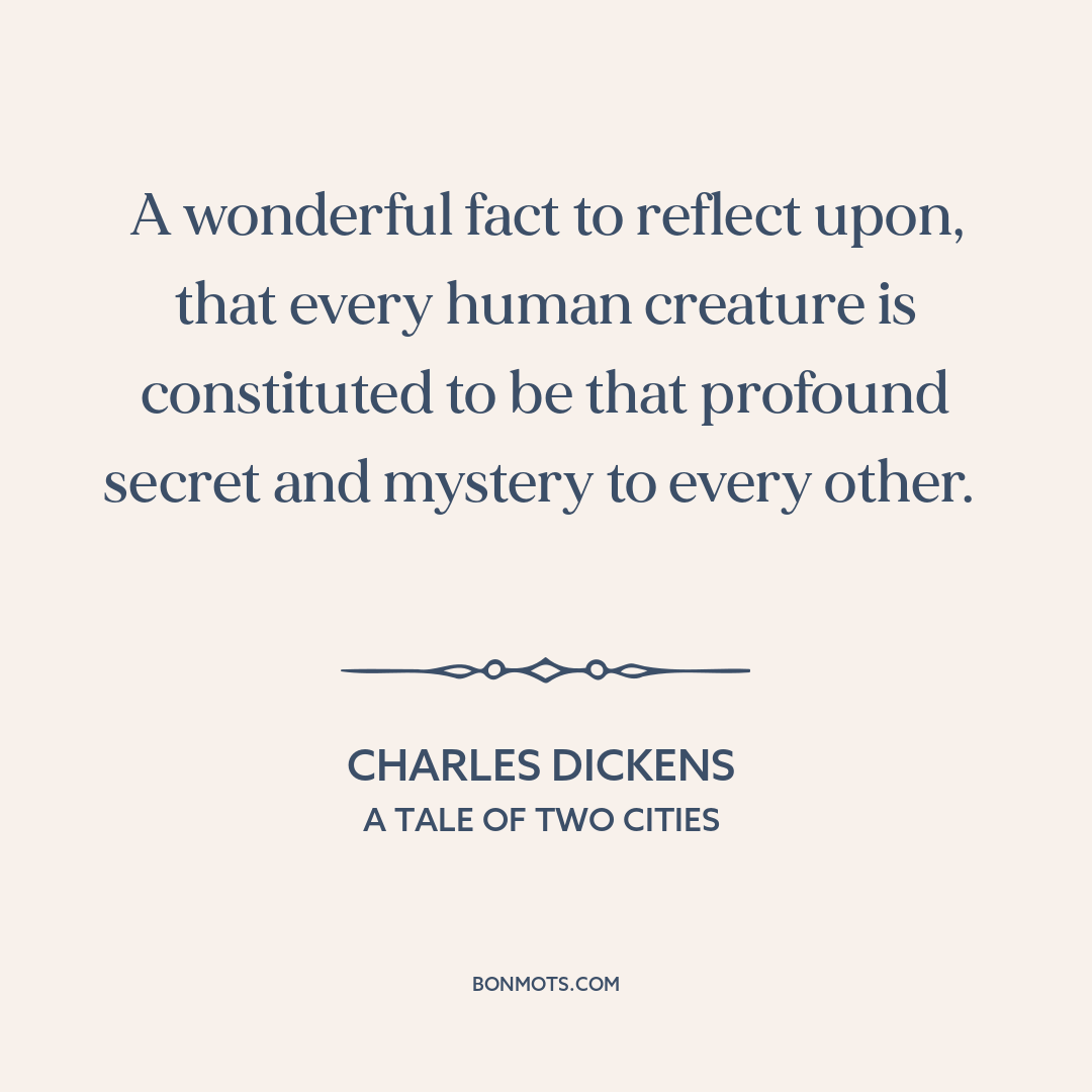 A wonderful fact to reflect upon, that every human creature is constituted to be that profound secret and mystery to every other.