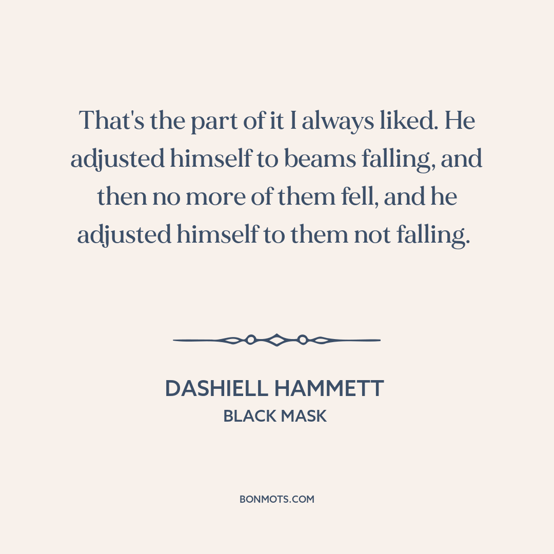 That's the part of it I always liked. He adjusted himself to beams falling, and then no more of them fell, and he adjusted himself to them not falling.