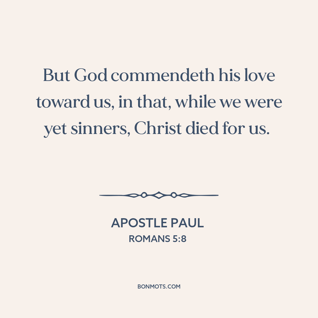 But God commendeth his love toward us, in that, while we were yet sinners, Christ died for us.