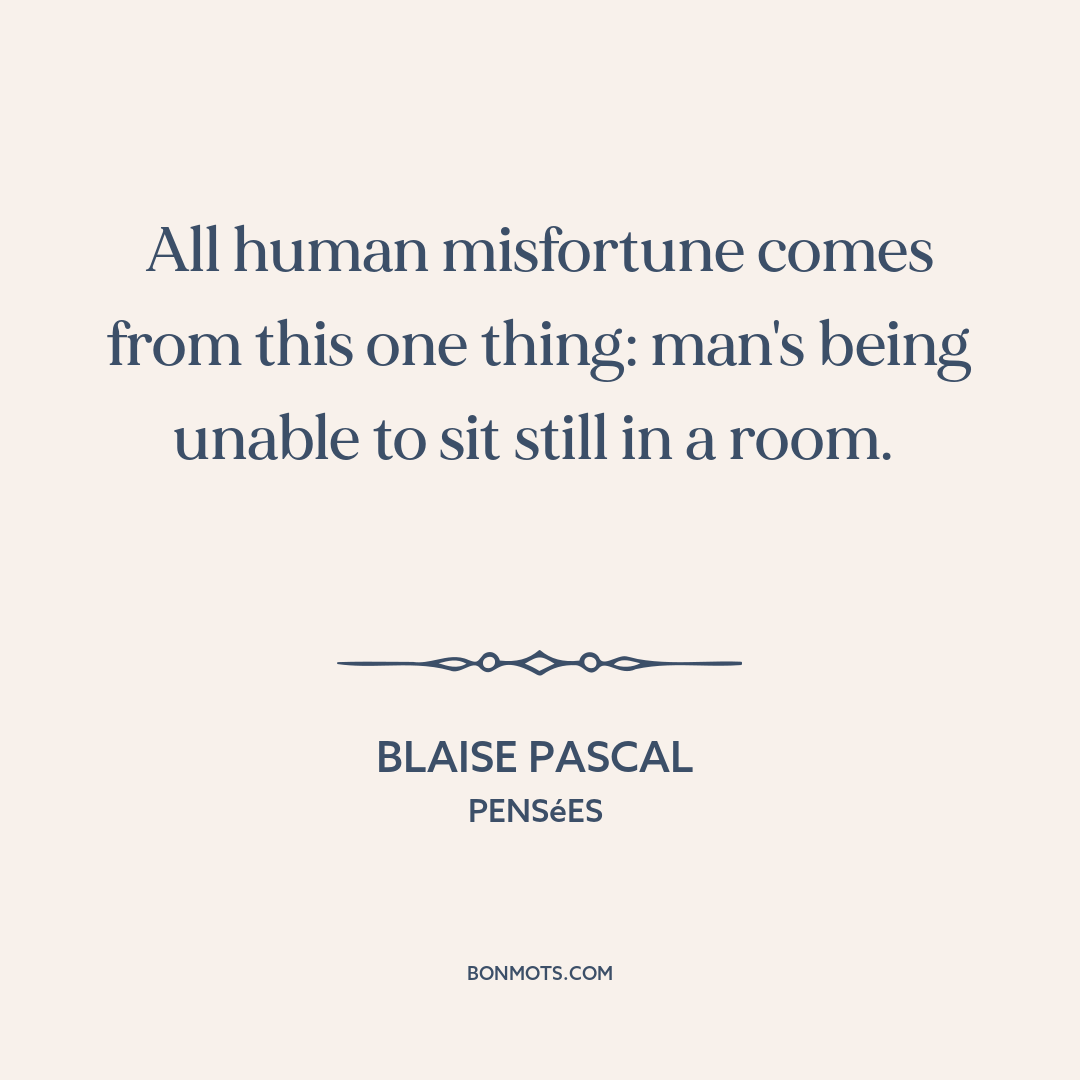 All human misfortune comes from this one thing: man's being unable to sit still in a room.