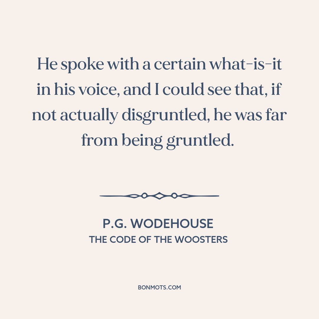 He spoke with a certain what-is-it in his voice, and I could see that, if not actually disgruntled, he was far from being gruntled.