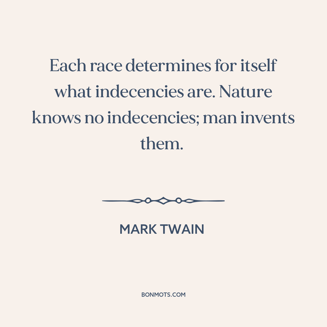 Each race determines for itself what indecencies are. Nature knows no indecencies; man invents them.