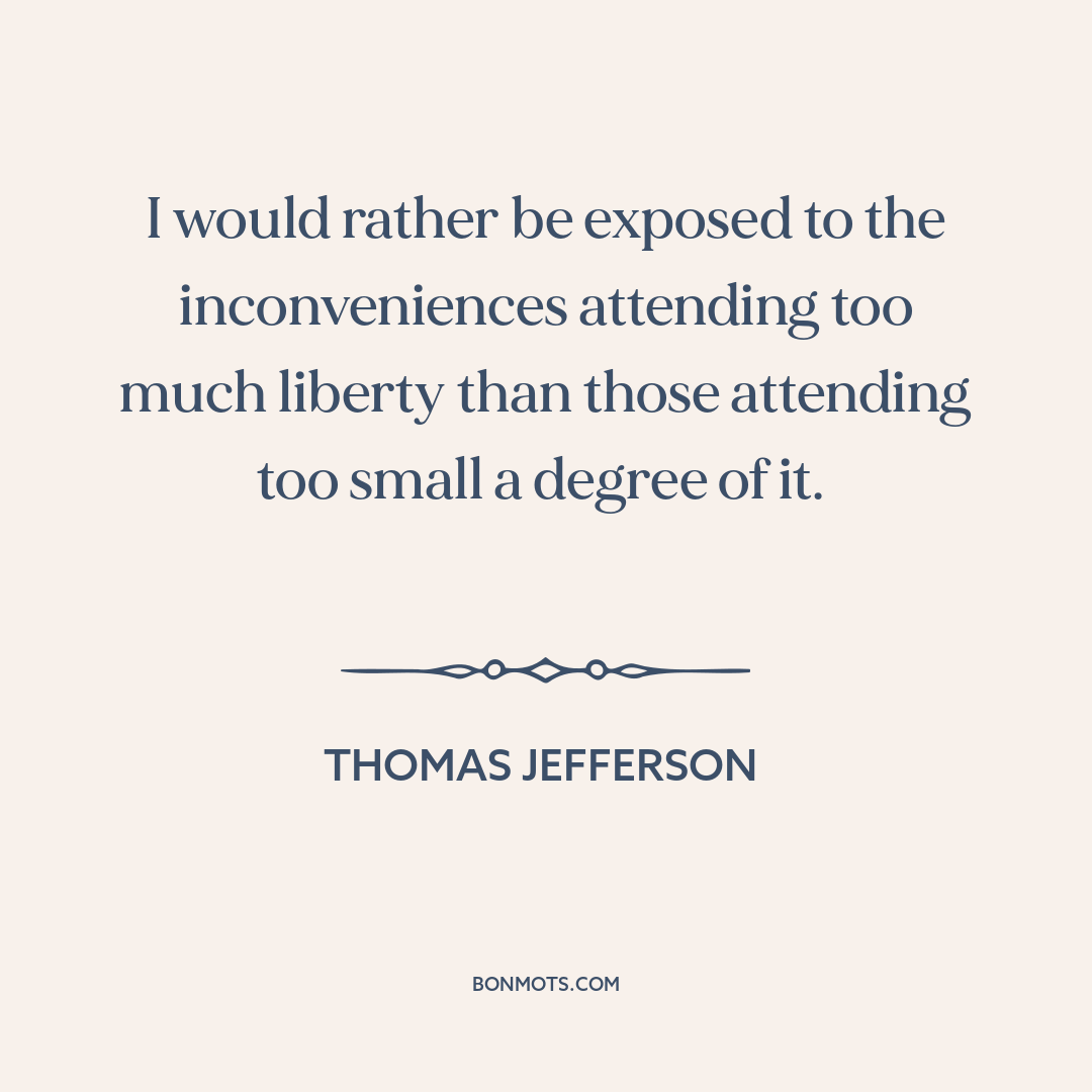 I would rather be exposed to the inconveniences attending too much liberty than those attending too small a degree of it.