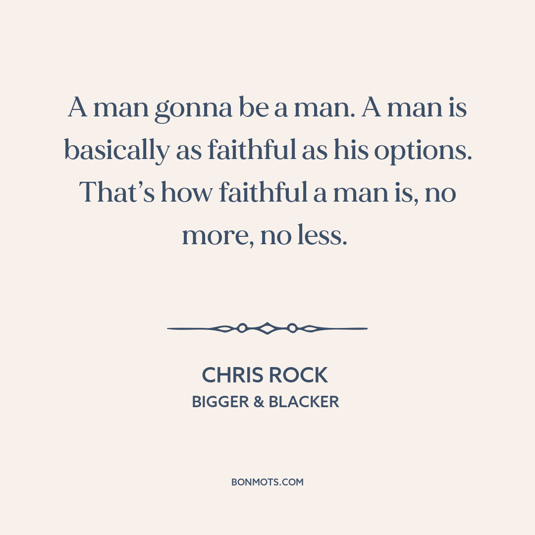 A man gonna be a man. A man is basically as faithful as his options. That’s how faithful a man is, no more, no less.