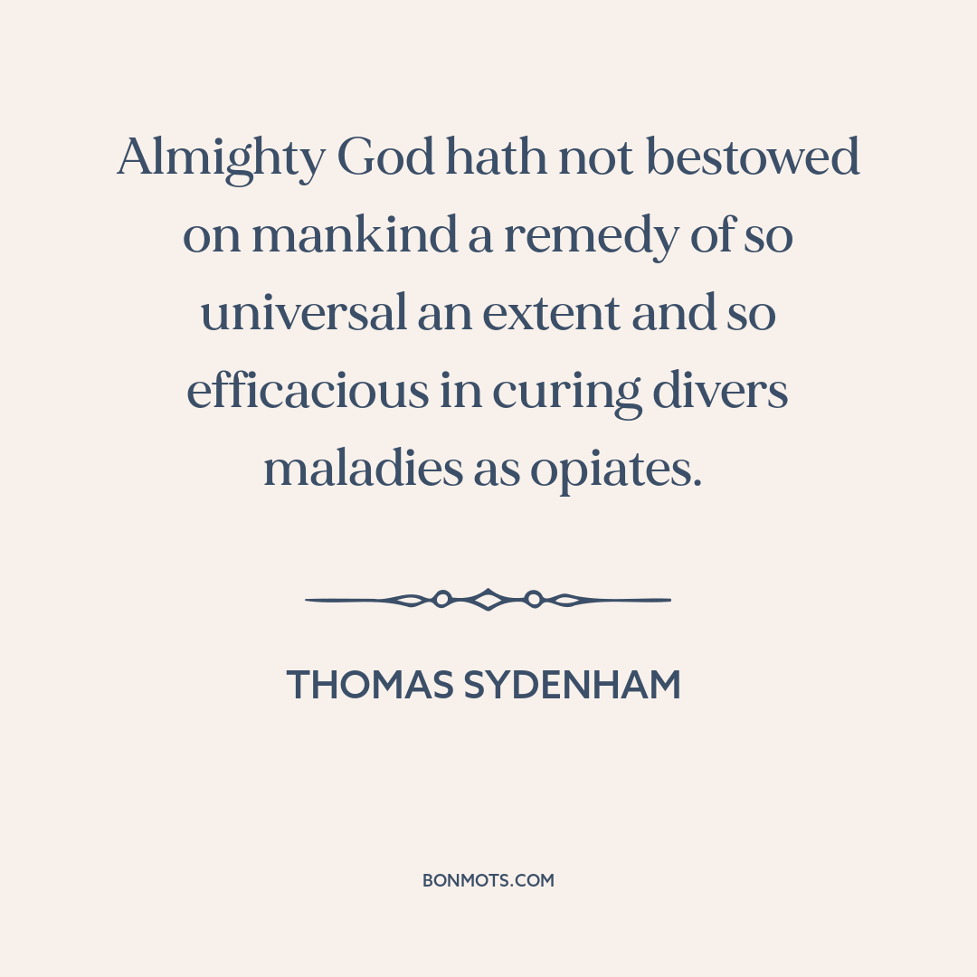 Almighty God hath not bestowed on mankind a remedy of so universal an extent and so efficacious in curing divers maladies as opiates.