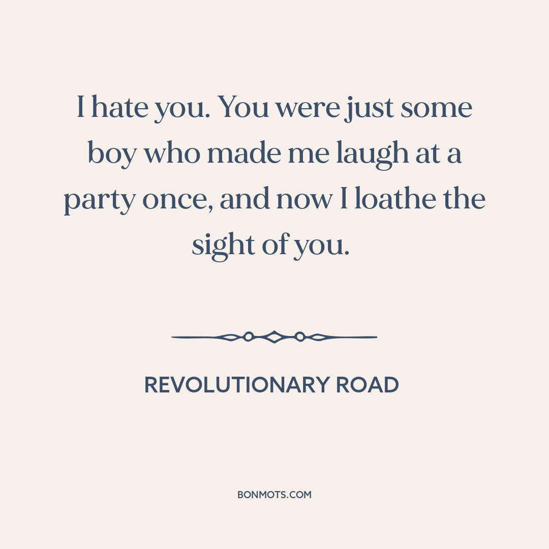 I hate you. You were just some boy who made me laugh at a party once, and now I loathe the sight of you.