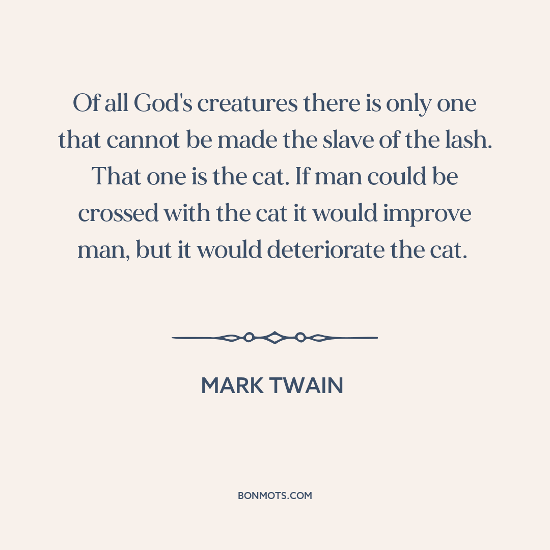 Of all God's creatures there is only one that cannot be made the slave of the lash. That one is the cat. If man could be crossed with the cat it would improve man, but it would deteriorate the cat.