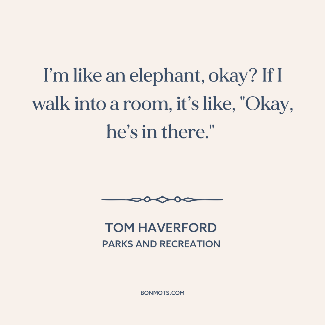 I’m like an elephant, okay? If I walk into a room, it’s like, "Okay, he’s in there."