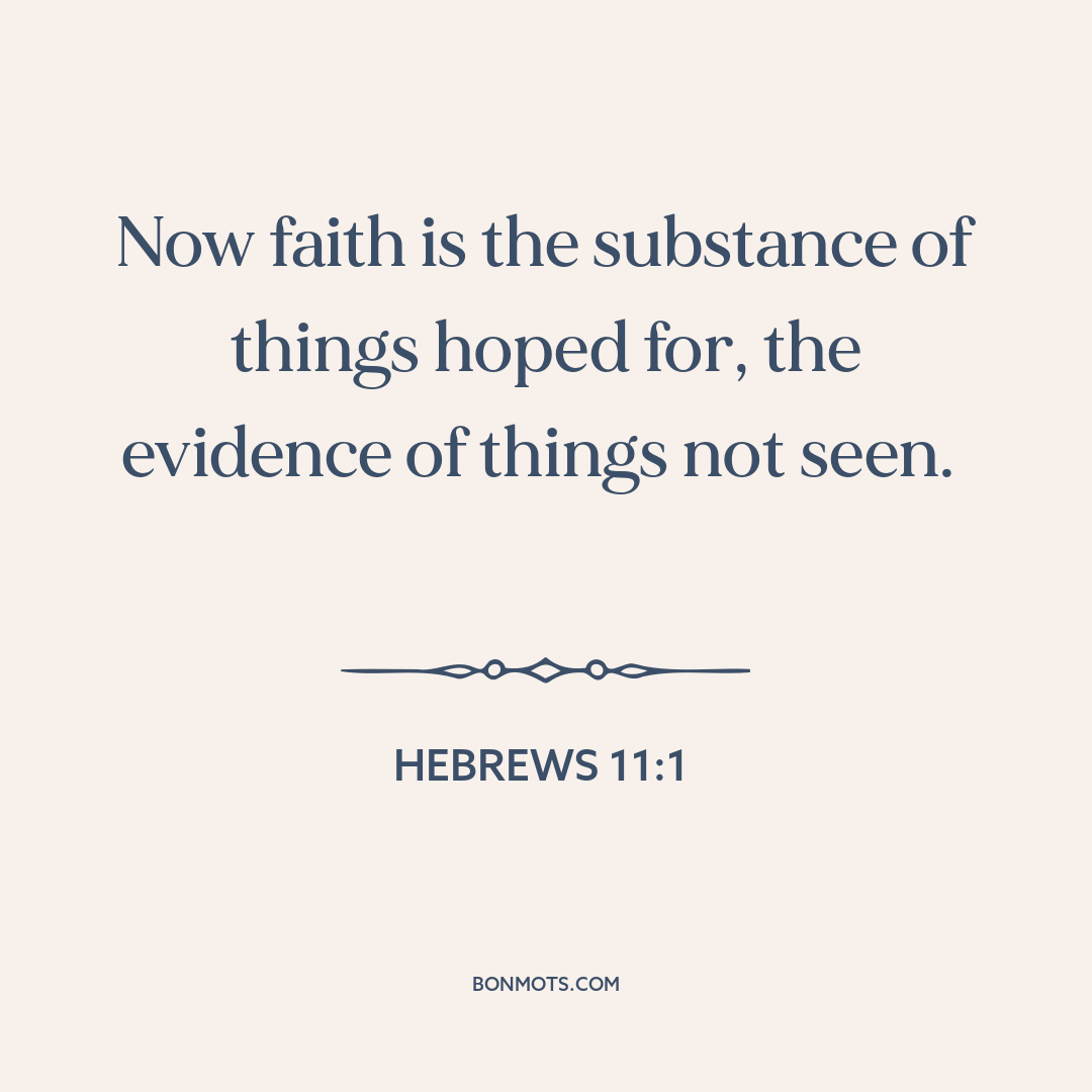Now faith is the substance of things hoped for, the evidence of things not seen.