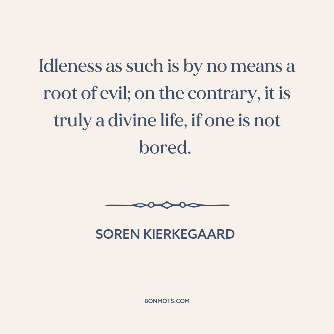 Idleness as such is by no means a root of evil; on the contrary, it is truly a divine life, if one is not bored.