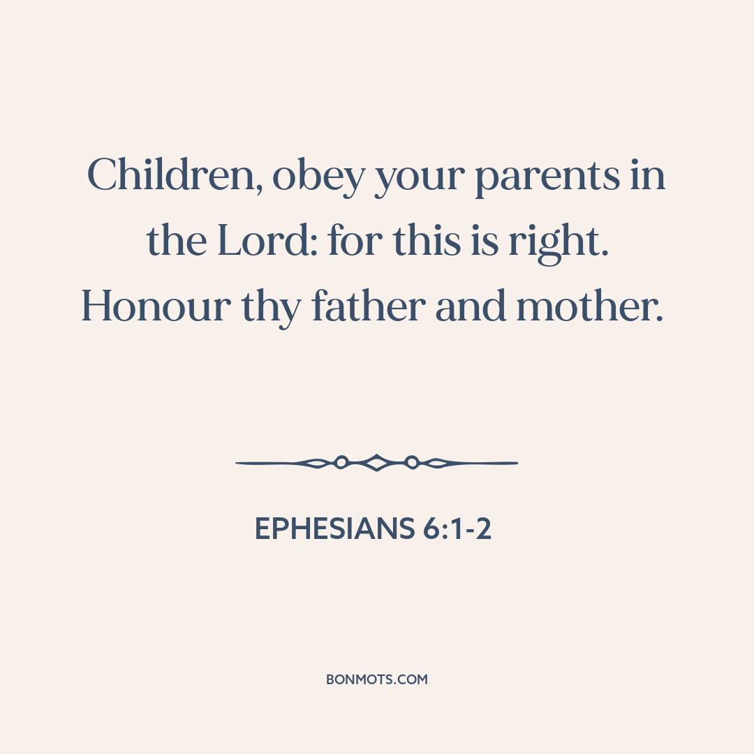 Children, obey your parents in the Lord: for this is right. Honour thy father and mother.