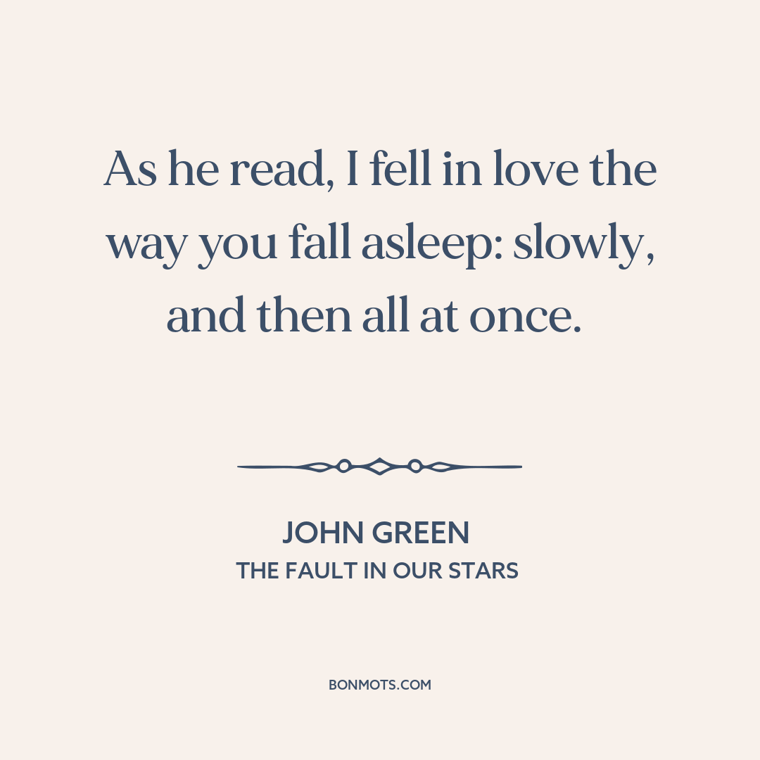 As he read, I fell in love the way you fall asleep: slowly, and then all at once.