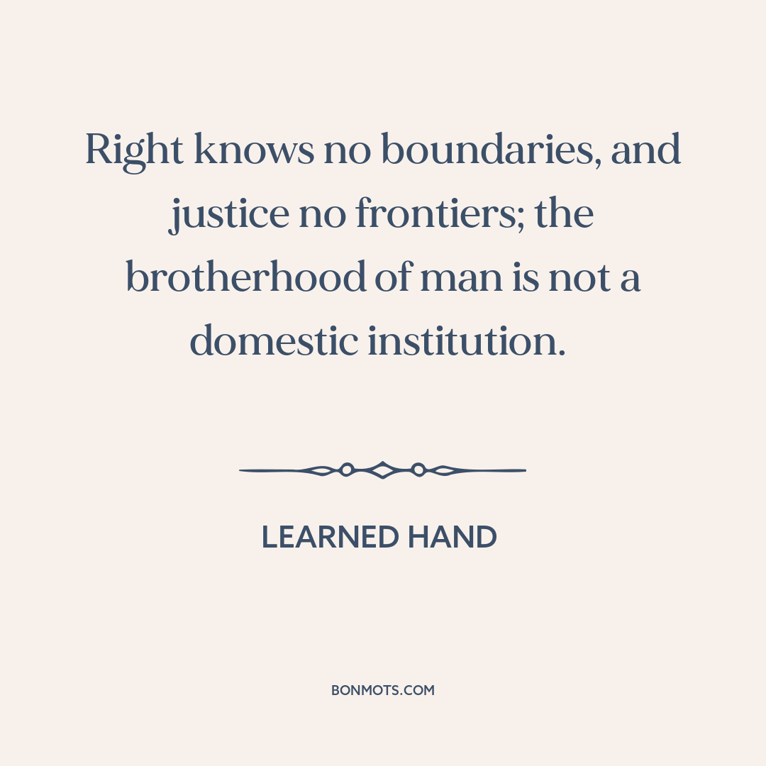 Right knows no boundaries, and justice no frontiers; the brotherhood of man is not a domestic institution.