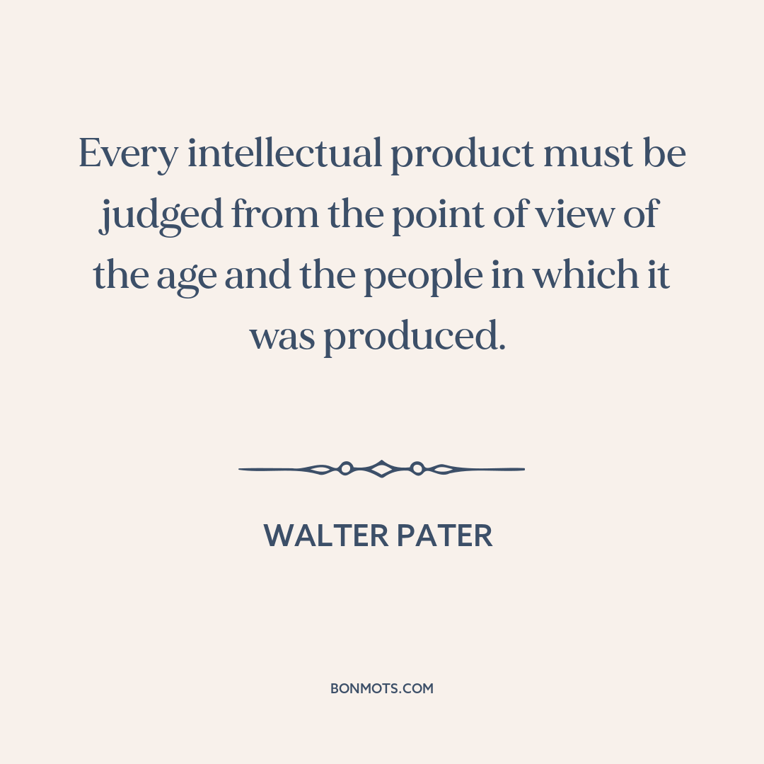 Every intellectual product must be judged from the point of view of the age and the people in which it was produced.