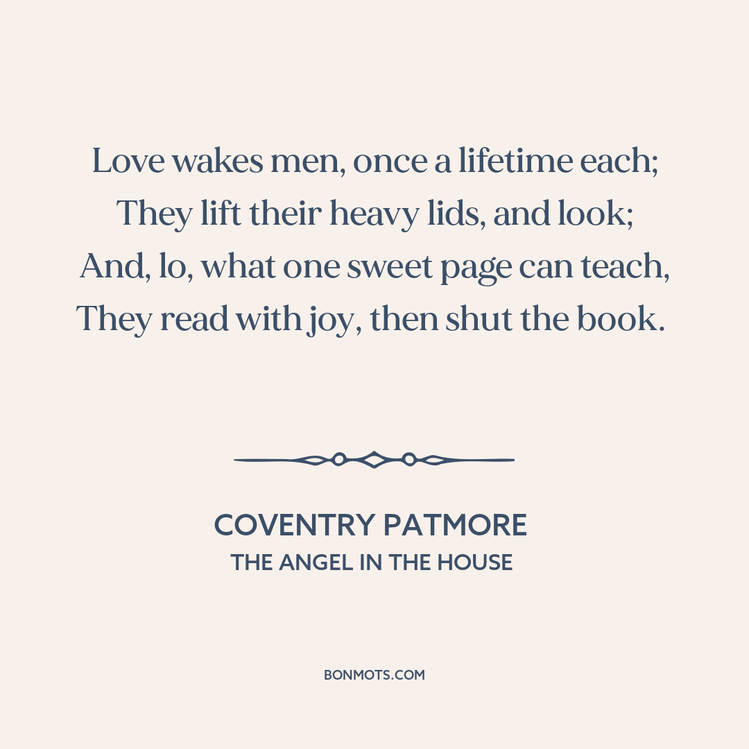 Patmore, Coventry. The Angel in the House. Self-published, 1854, bk. 1, canto 8, prelude 2.
