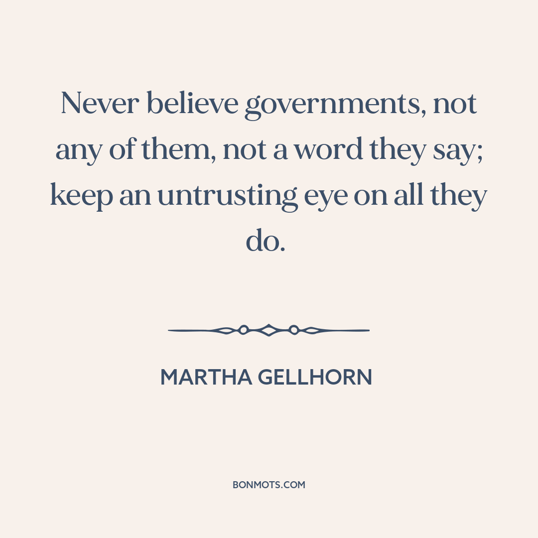 Never believe governments, not any of them, not a word they say; keep an untrusting eye on all they do.