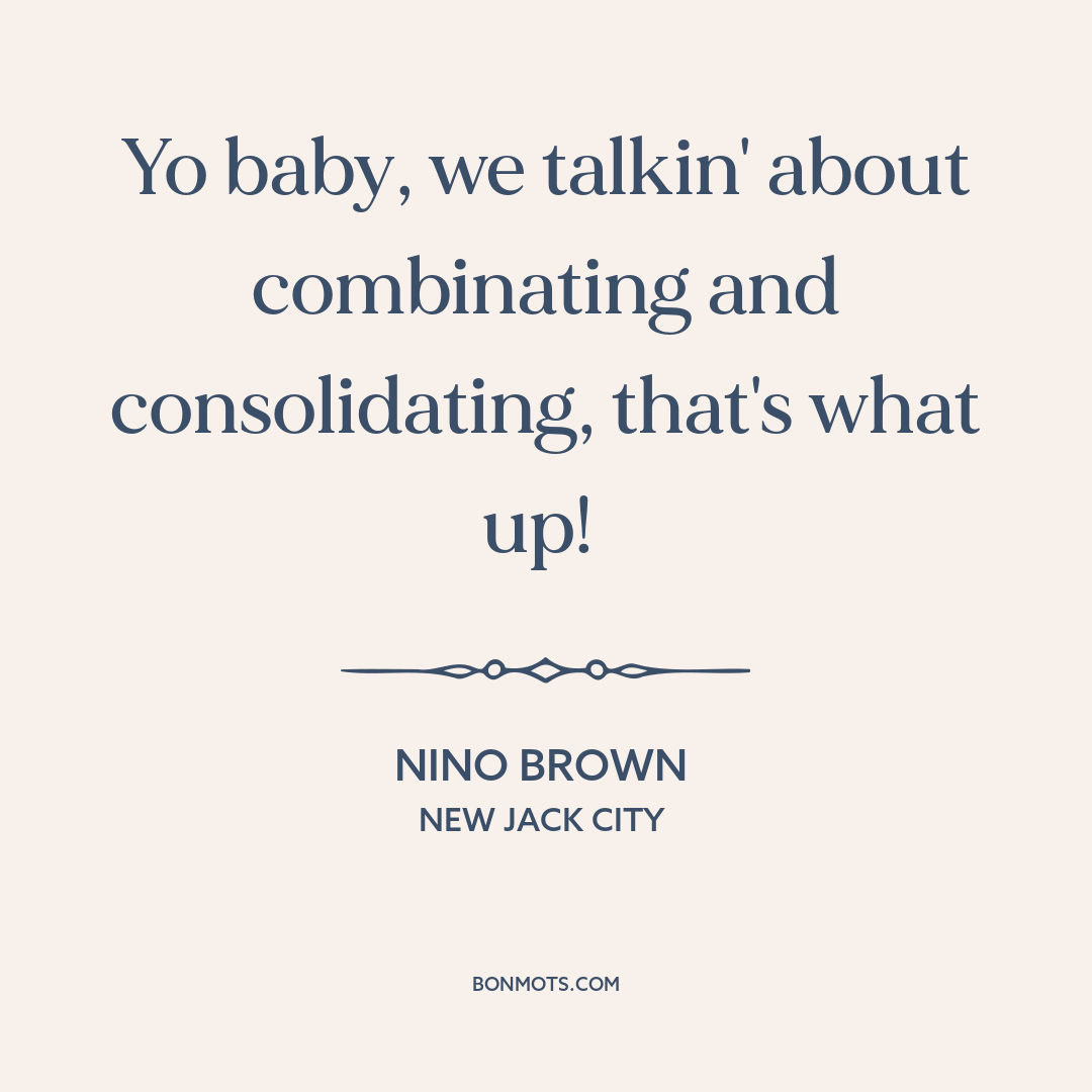 Yo baby, we talkin' about combinating and consolidating, that's what up!