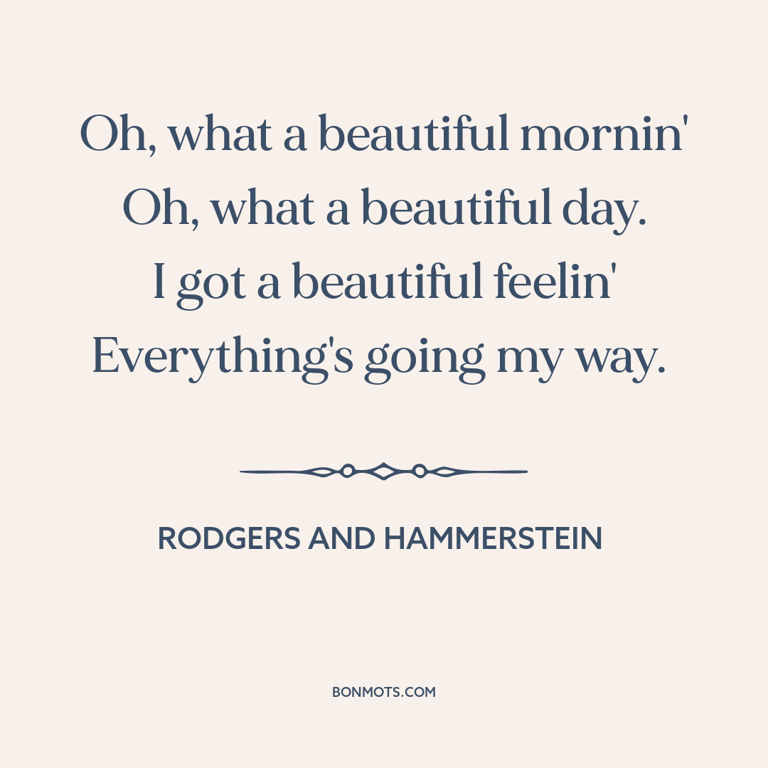 Hammerstein, Oscar, II. "Oh, What a Beautiful Mornin'." Oklahoma! Composed by Richard Rodgers. 1943, St. James Theatre, New York City, New York, USA.