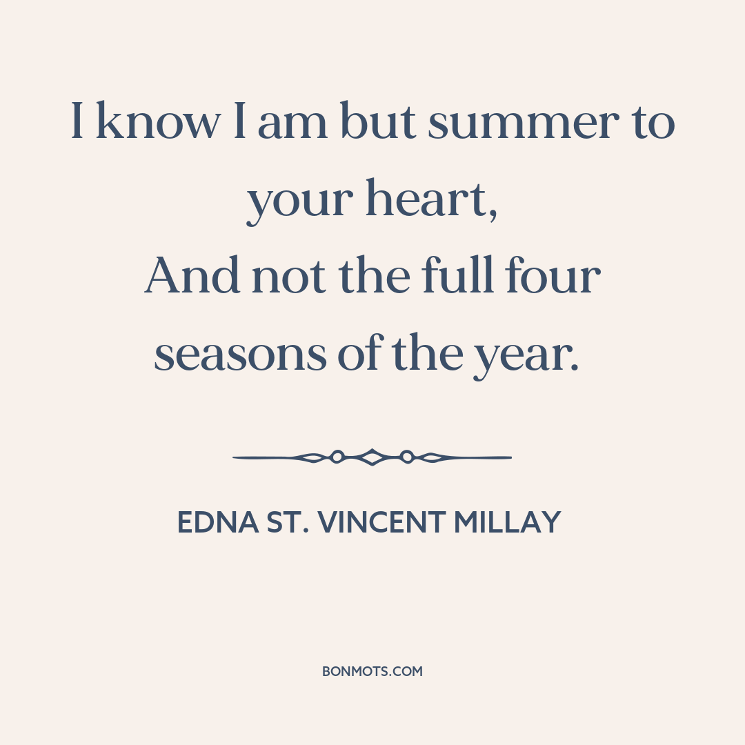 Millay, Edna St. Vincent. "I Know I Am But Summer." The Harp-Weaver, and Other Poems. Harper & Brothers, 1923, I. 1.