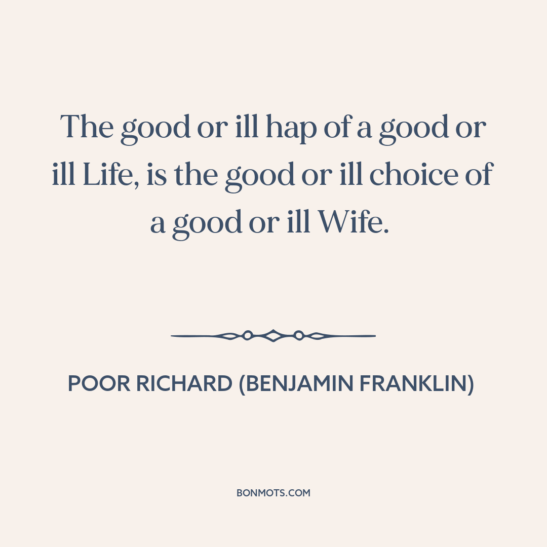 The good or ill hap of a good or ill Life, is the good or ill choice of a good or ill Wife.