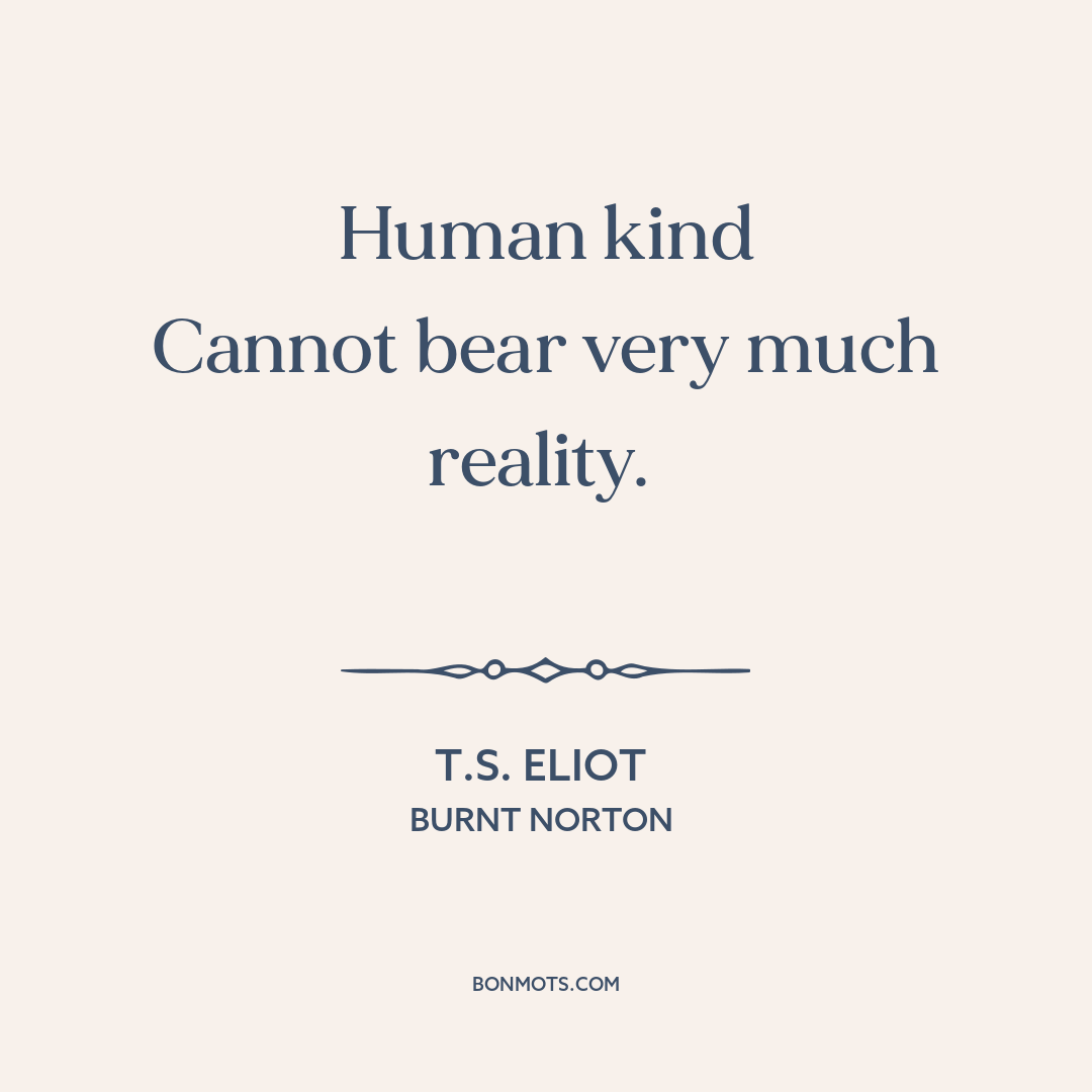Eliot, T. S. “Burnt Norton.” Collected Poems 1909–1935. Harcourt, Brace And Company, 1936, pt. 5.