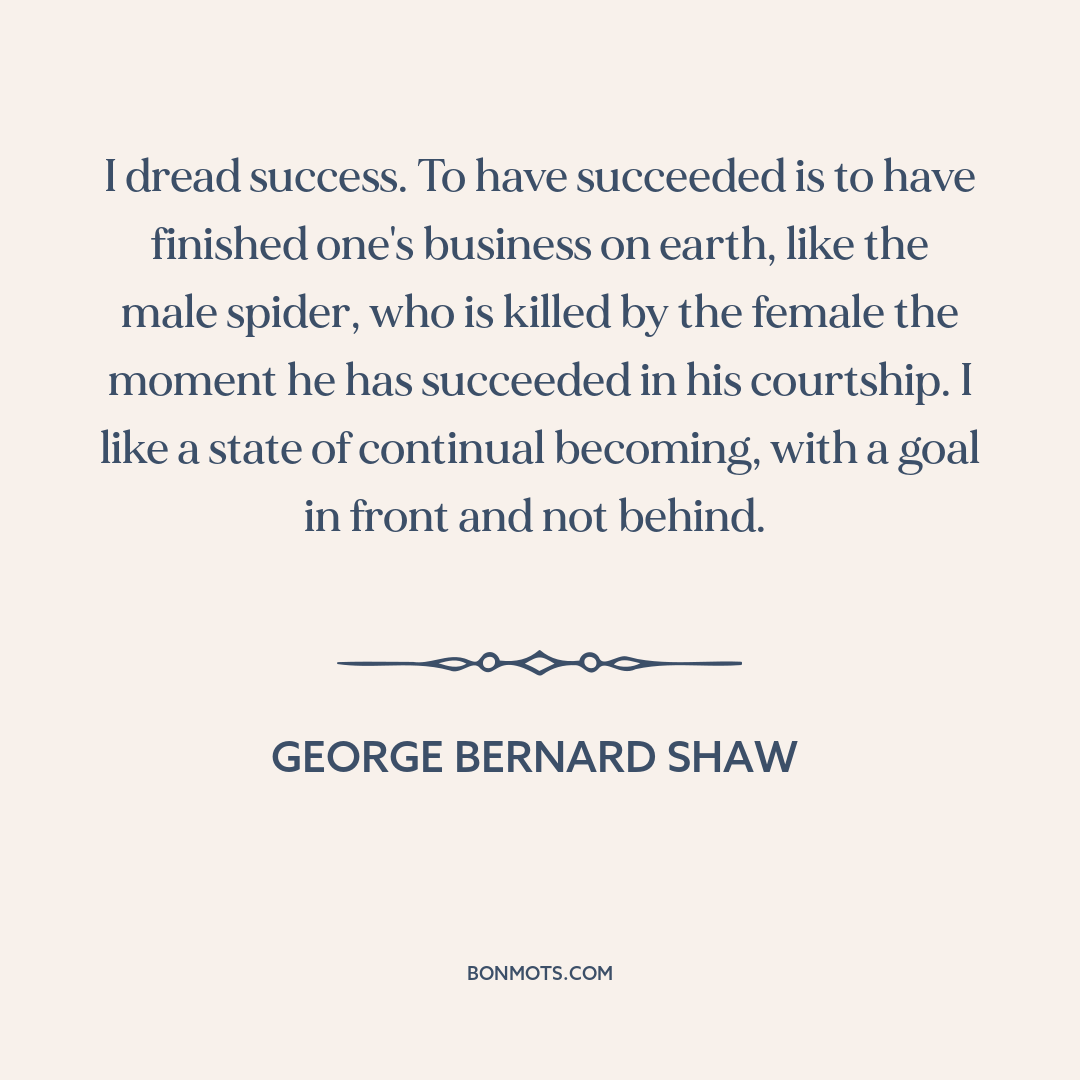 I dread success. To have succeeded is to have finished one's business on earth, like the male spider, who is killed by the female the moment he has succeeded in his courtship. I like a state of continual becoming, with a goal in front and not behind.