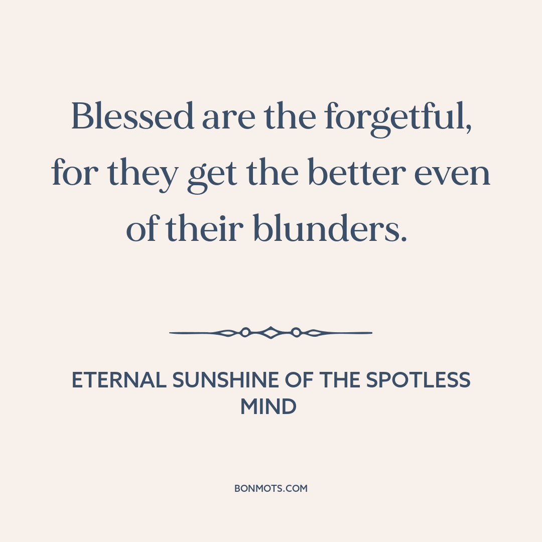 Blessed are the forgetful, for they get the better even of their blunders.
