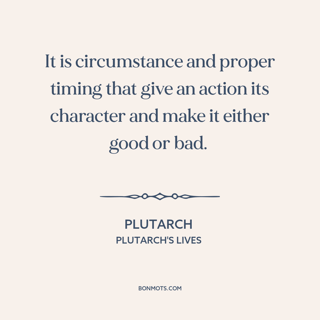 It is circumstance and proper timing that give an action its character and make it either good or bad.