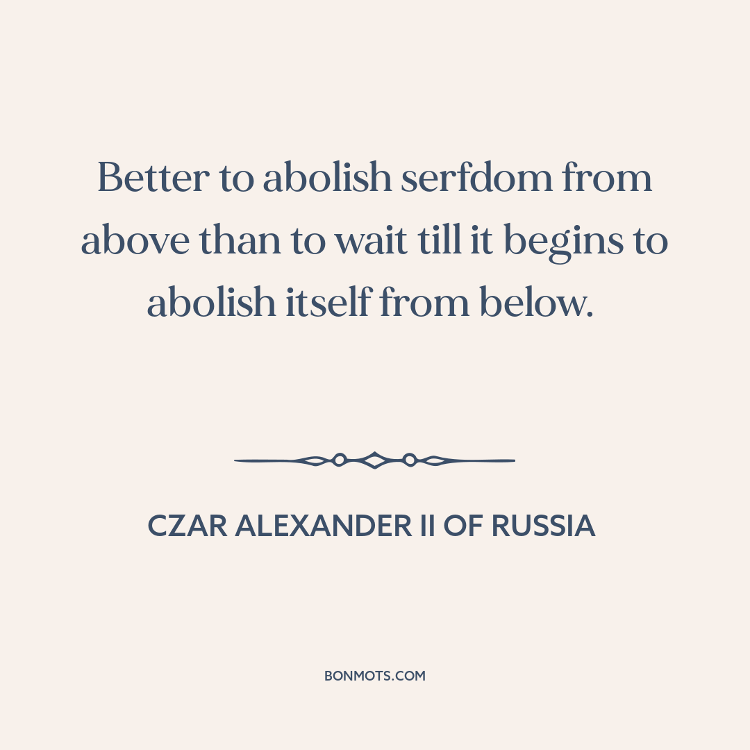 Better to abolish serfdom from above than to wait till it begins to abolish itself from below.