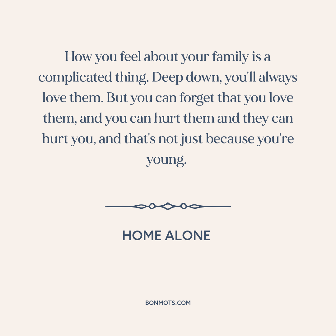 How you feel about your family is a complicated thing. Deep down, you'll always love them. But you can forget that you love them, and you can hurt them and they can hurt you, and that's not just because you're young.