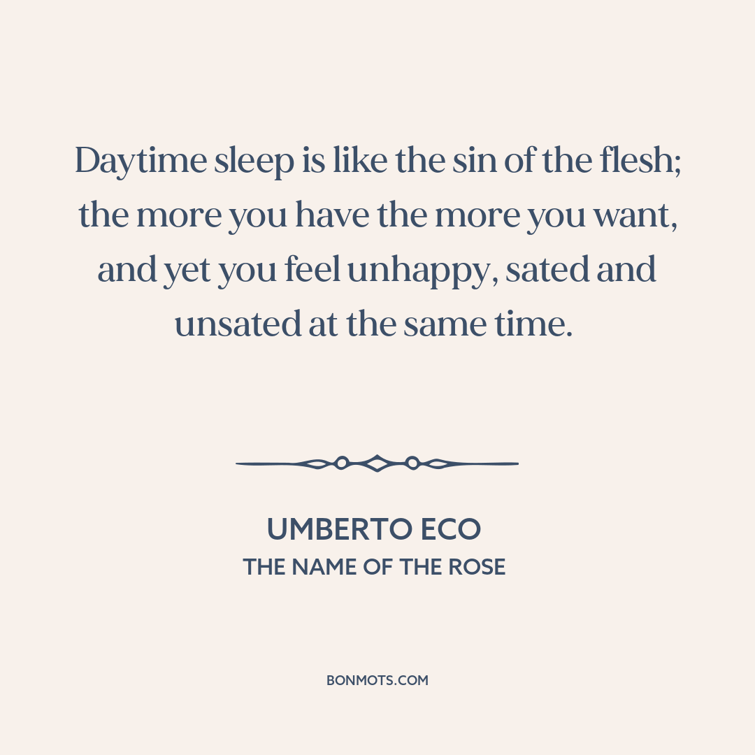 Daytime sleep is like the sin of the flesh; the more you have the more you want, and yet you feel unhappy, sated and unsated at the same time.