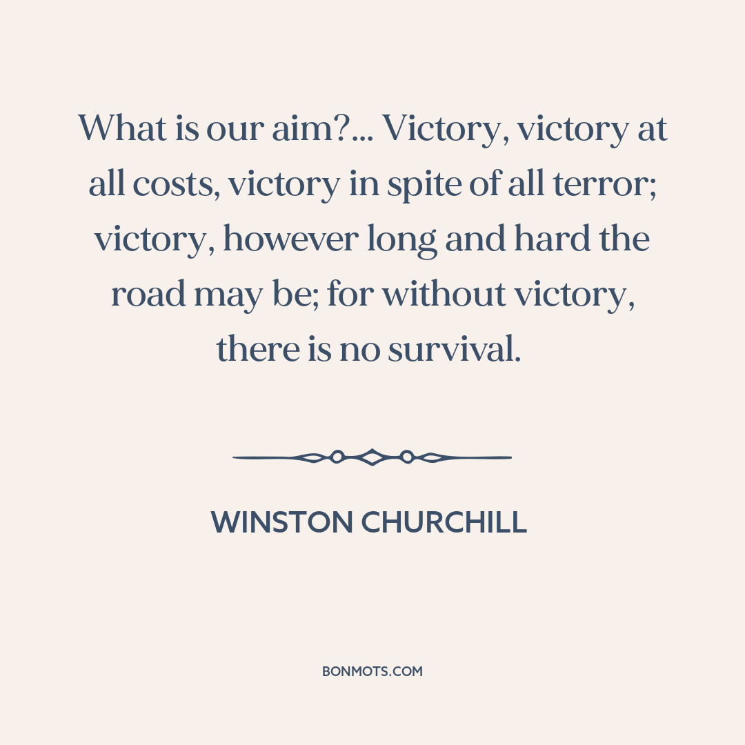 What is our aim?... Victory, victory at all costs, victory in spite of all terror; victory, however long and hard the road may be; for without victory, there is no survival.