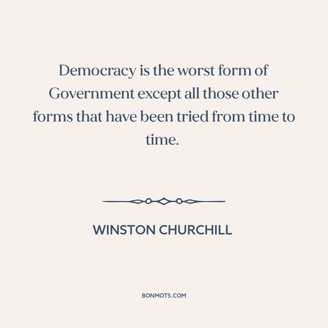 Democracy is the worst form of Government except all those other forms that have been tried from time to time.