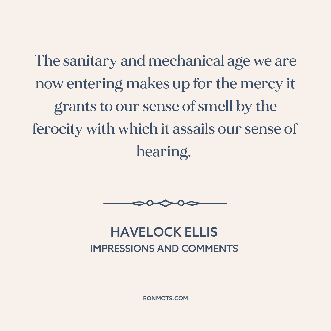 The sanitary and mechanical age we are now entering makes up for the mercy it grants to our sense of smell by the ferocity with which it assails our sense of hearing.