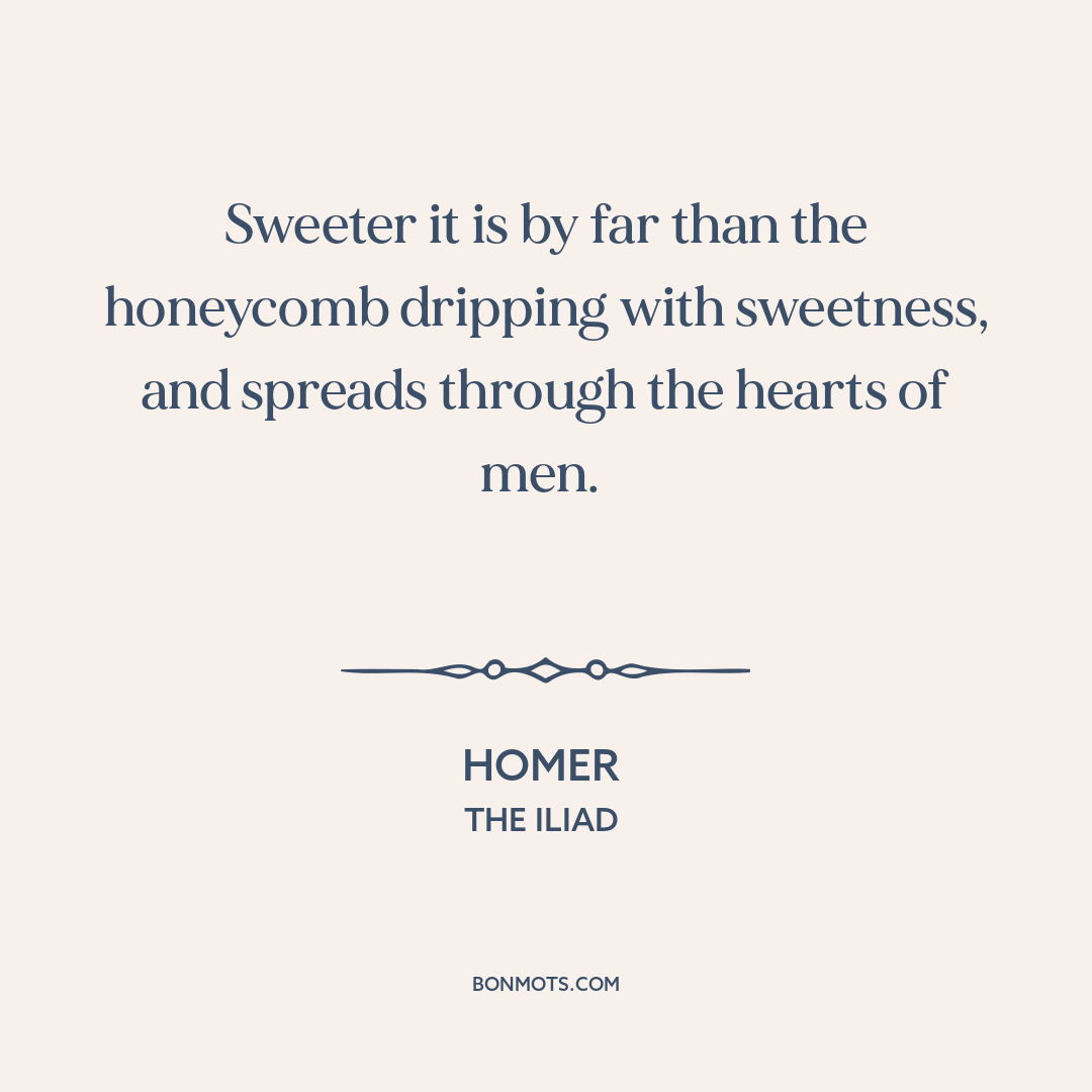 Sweeter it is by far than the honeycomb dripping with sweetness, and spreads through the hearts of men.