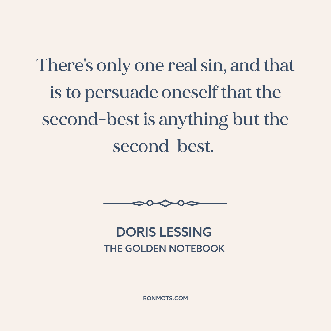 There's only one real sin, and that is to persuade oneself that the second-best is anything but the second-best.