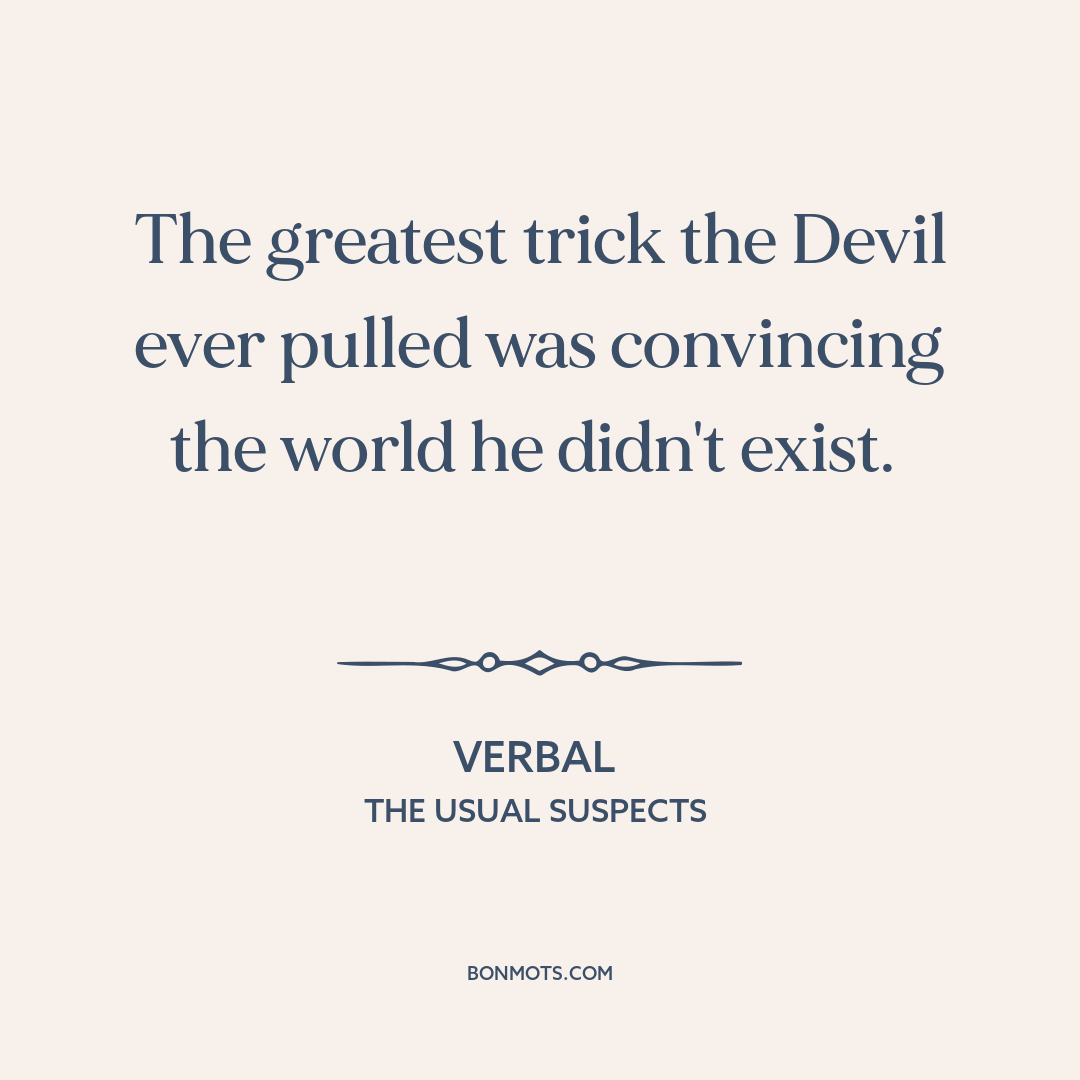 The greatest trick the Devil ever pulled was convincing the world he didn't exist.