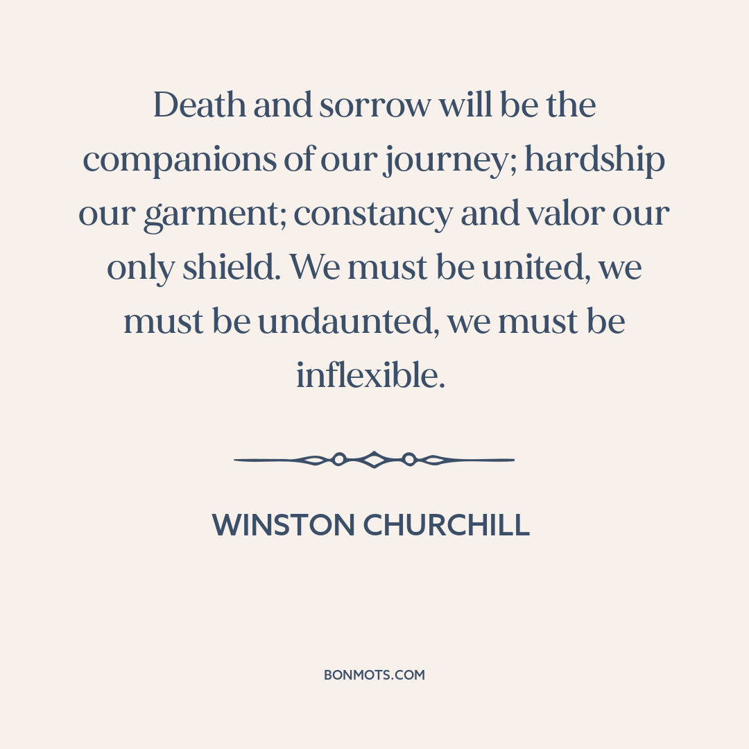 Death and sorrow will be the companions of our journey; hardship our garment; constancy and valor our only shield. We must be united, we must be undaunted, we must be inflexible.