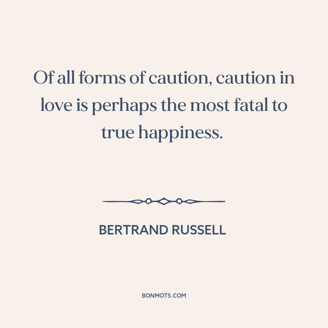 Of all forms of caution, caution in love is perhaps the most fatal to true happiness.