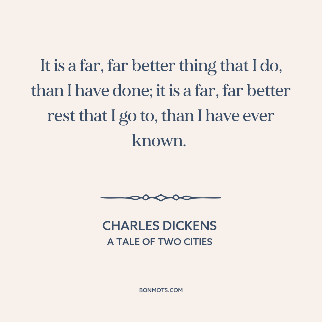 It is a far, far better thing that I do, than I have done; it is a far, far better rest that I go to, than I have ever known.