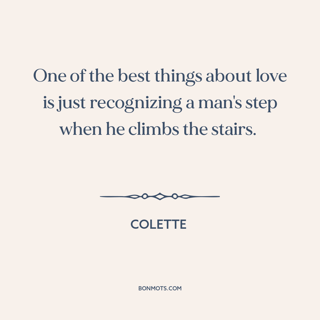 One of the best things about love is just recognizing a man's step when he climbs the stairs.