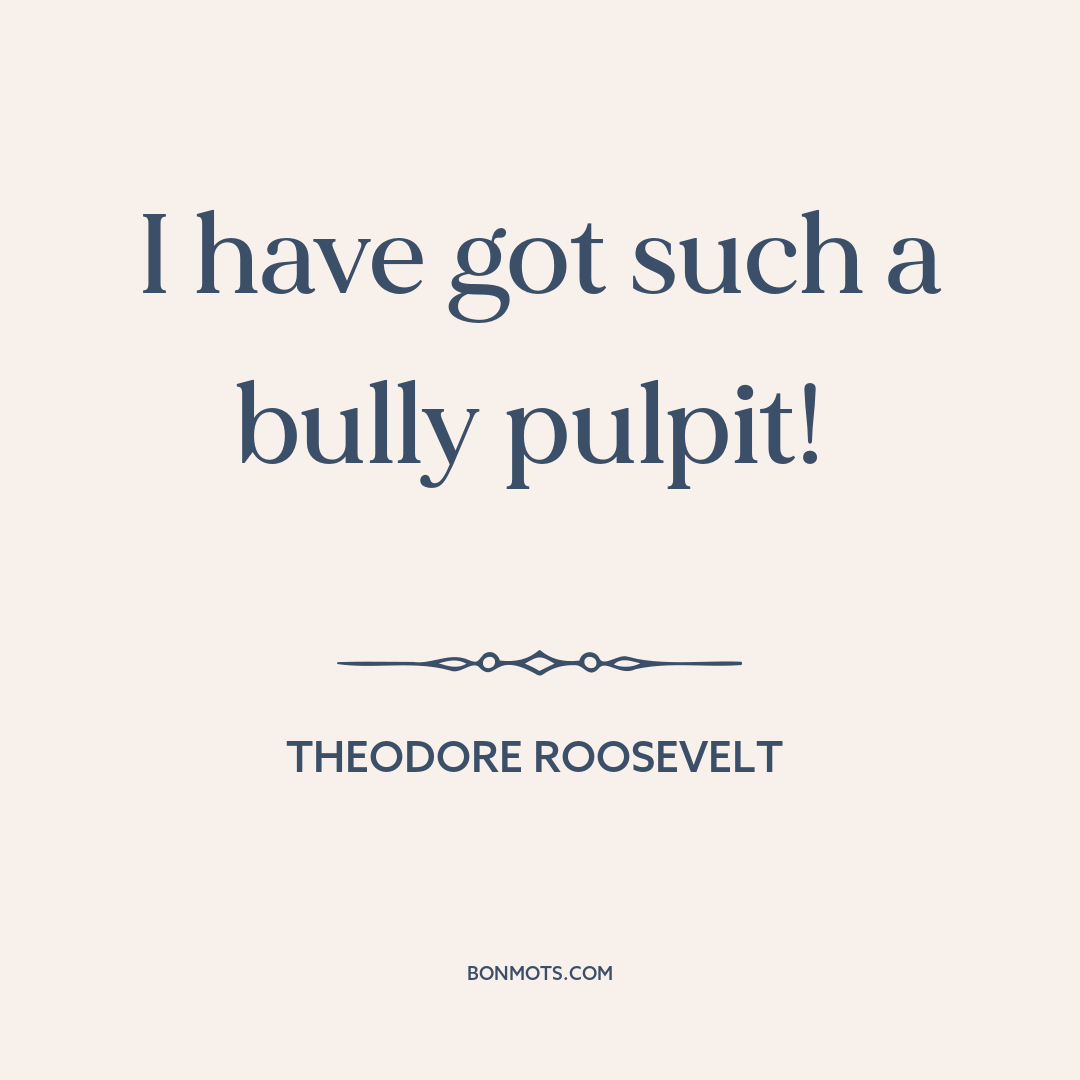 I have got such a bully pulpit!