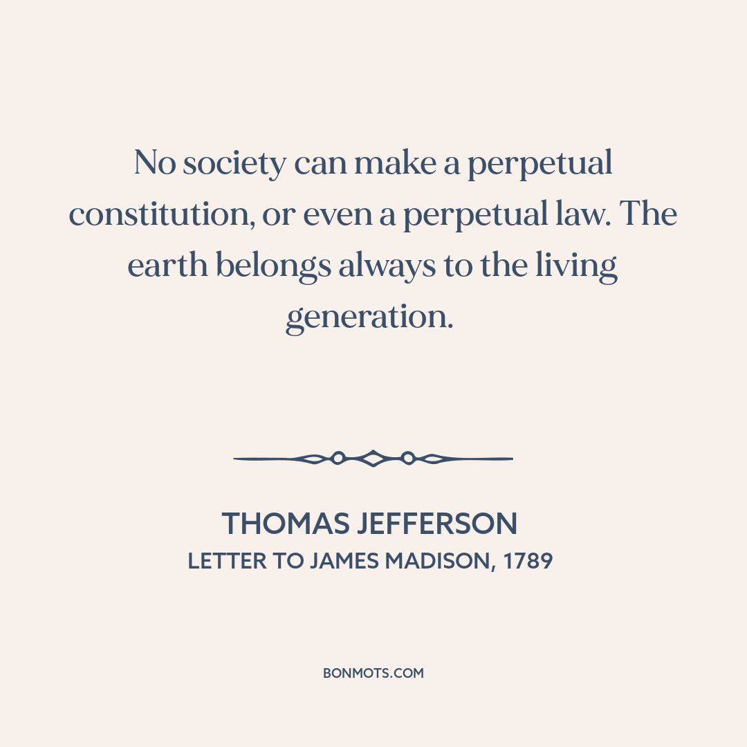 No society can make a perpetual constitution, or even a perpetual law. The earth belongs always to the living generation.