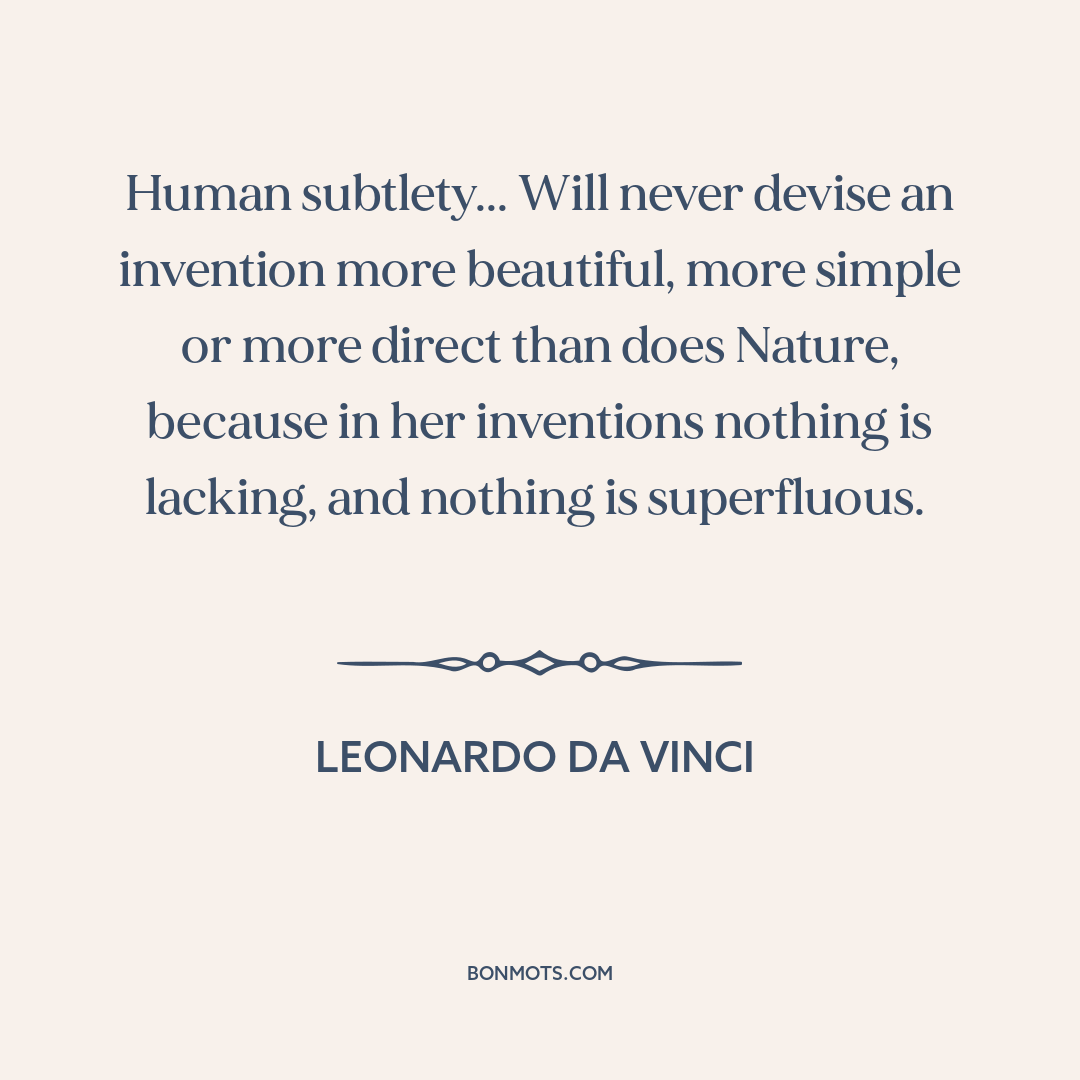 Human subtlety... Will never devise an invention more beautiful, more simple or more direct than does Nature, because in her inventions nothing is lacking, and nothing is superfluous.