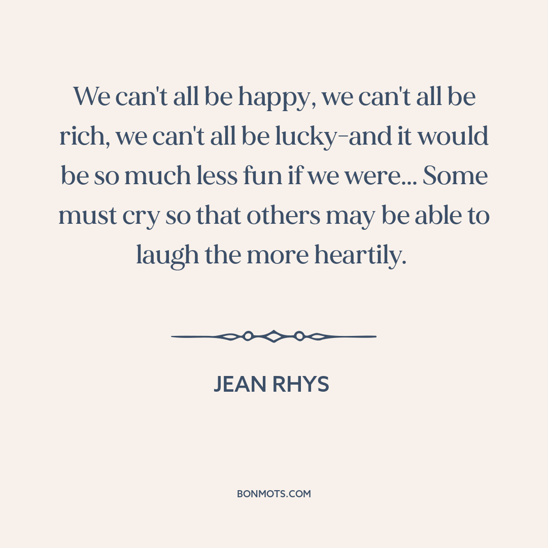 We can't all be happy, we can't all be rich, we can't all be lucky-and it would be so much less fun if we were... Some must cry so that others may be able to laugh the more heartily.