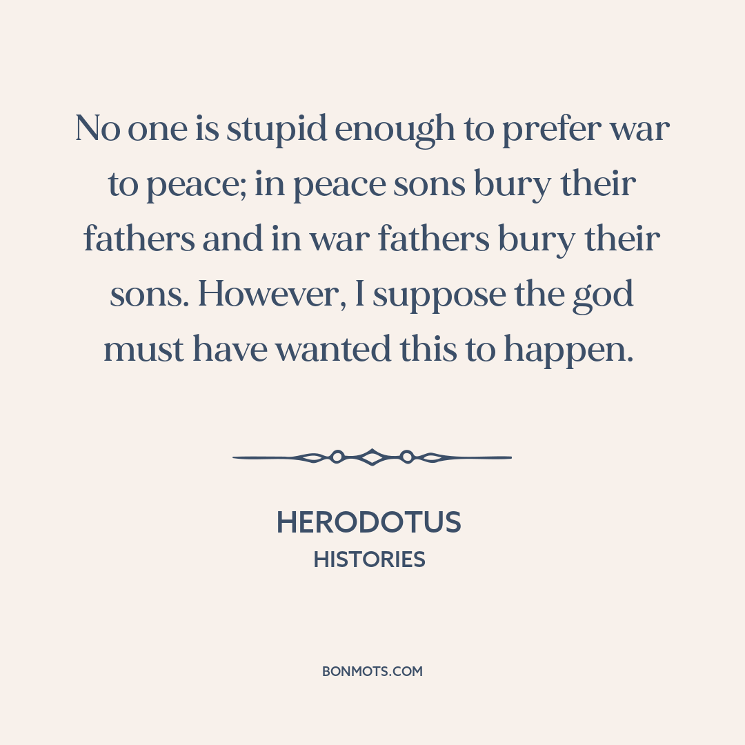 No one is stupid enough to prefer war to peace; in peace sons bury their fathers and in war fathers bury their sons. However, I suppose the god must have wanted this to happen.
