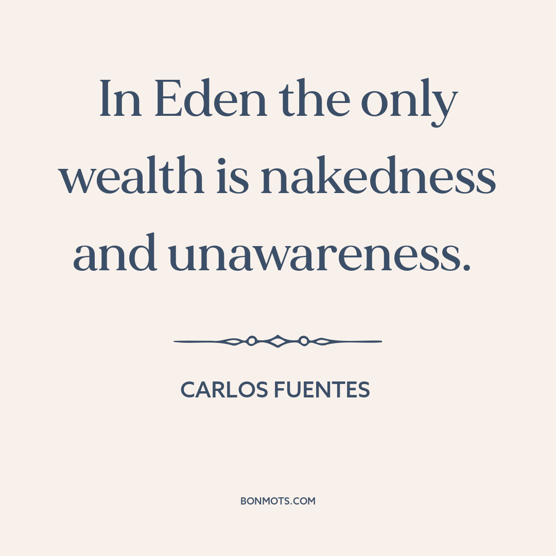 In Eden the only wealth is nakedness and unawareness.