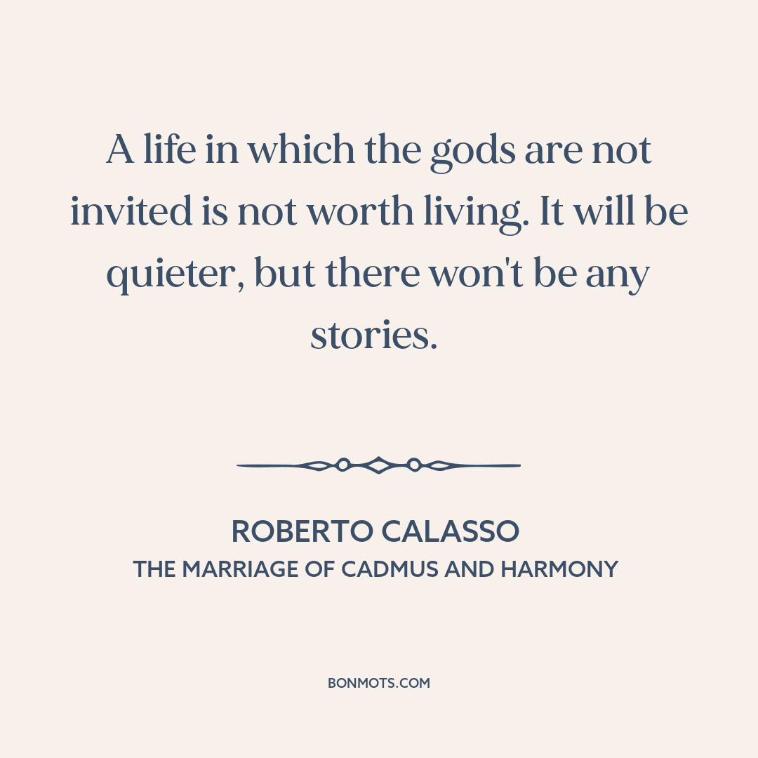 A life in which the gods are not invited is not worth living. It will be quieter, but there won't be any stories.